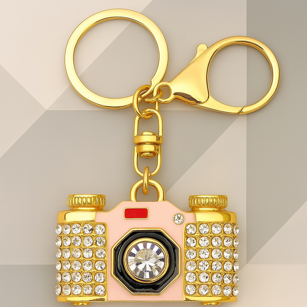 This stunning clear crystal rhinestone Bassin and Brown Camera Keyring will make an ideal gift to give to an amateur or professional photography enthusiast. The Keyring is finely detailed with clear sparkling rhinestone crystals toned within a gold, white, black and red enamel setting. Bassin and Brown keyrings are presented and delivered in a recyclable buff coloured kraft gift box. This sparkling Camera Keyring also features a sturdy gold ring and attractive clip for holding the keys stylishly and safely together. The stunning rhinestone camera measures 5cm in length and 3cm in height and will make a thoughtful and focused gift to give for Christmas or a special occasion. Bassin and Brown deliver worldwide and aim to send out all orders within 24 hours of receipt (business days). Next Day delivery service available via Royal Mail (UK only -next day delivery before 1pm - extra charge).