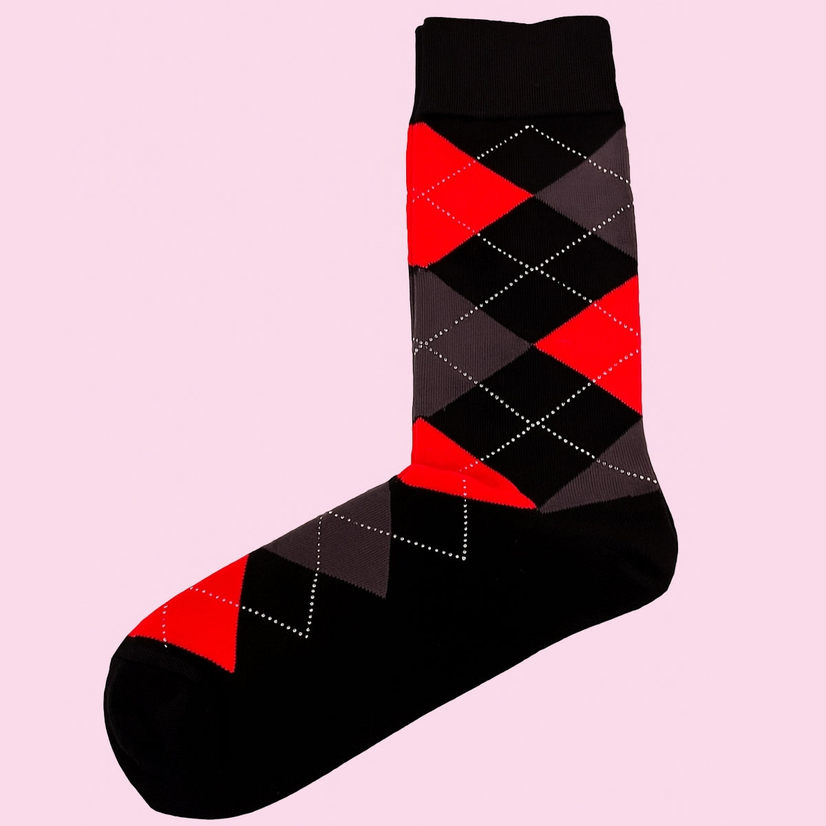 Striking Bassin and Brown Fleta Argyle socks that are crafted from 80% cotton and 17% nylon with 3% Lycra to reinforce the stress zones of these anti-bacterial, breathable and very comfortable to wear cotton socks. An elegant and modern diamond design with a black base and red and dark grey lozenges of colour teamed with an overlay of white inter crossing diagonal lines. These striking socks will lift a conservative or classic outfit with a stunning flash of design and colour. A fun gift to give for a special occasion or vibrant pair of socks for everyday wear. Bassin and Brown deliver worldwide and aim to send out all orders within 24 hours of receipt (business days). Next Day delivery service available via Royal Mail (UK only - extra charge) next day delivery before 1pm.