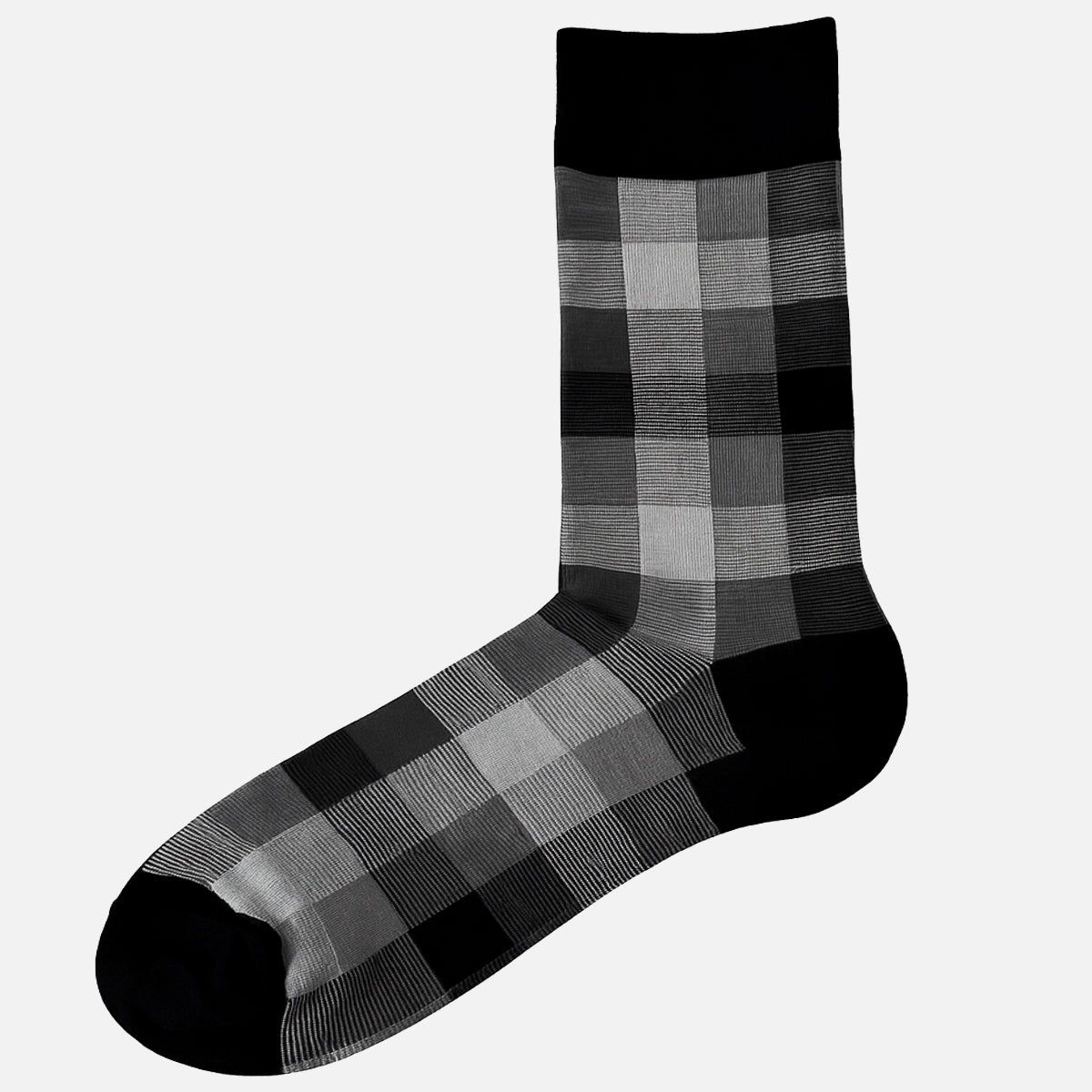 Bassin and Brown Lachlan Multi Colour Check Socks – Black, Charcoal and Grey.